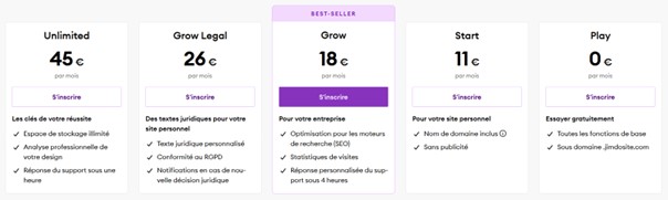 Aperçu des offres Jimdo (source : https://www.jimdo.com/fr/offres/site/) :