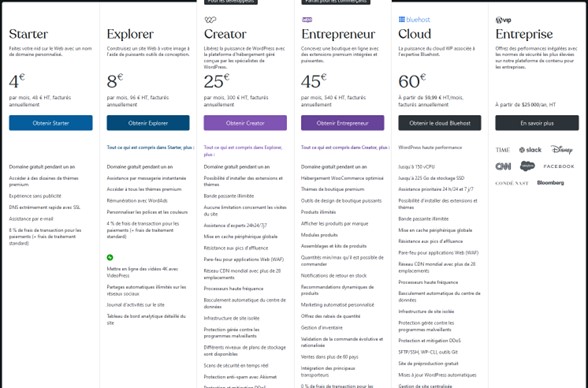 Service d’hébergement inclus dans les forfaits, éliminant le besoin de trouver un service tiers.